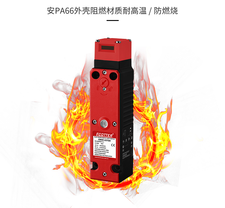 安全門開關外殼采用PA66阻燃材料,耐高溫,并電纜接頭防水,提高了產(chǎn)品本身的安全系數(shù)。