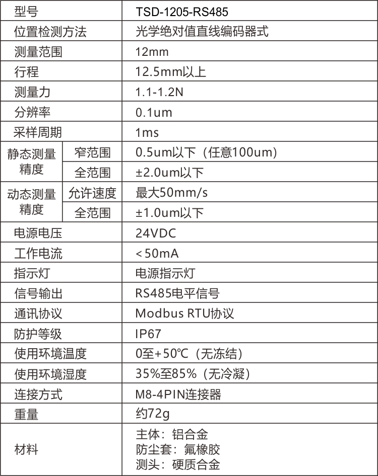 ECOTTER接觸位移傳感器TSD系列,通過光學絕對值直線編碼器原理,使傳感器具備高分辨率,不產(chǎn)生累積誤差,不產(chǎn)生失步。支持串口通訊,多種量程規(guī)格可選??蓽y量厚度、距離、直徑、偏移度、平整度等。