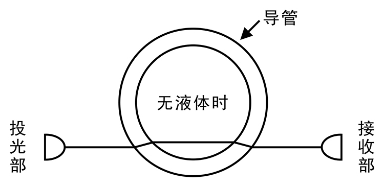 ②如導管內(nèi)有液體,投光部發(fā)出的光將穿透液體,不進入受光元件。(遮光狀態(tài))