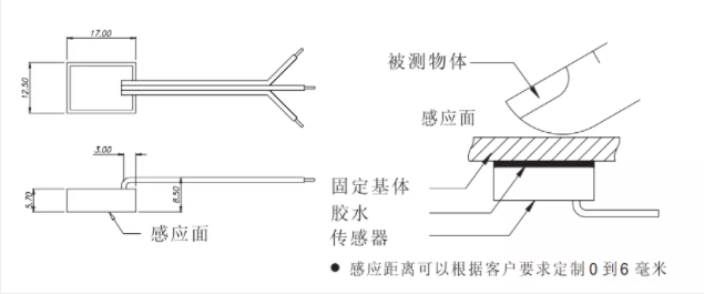 這款傳感器的體積是比市面上普通的傳感器體積要小上許多,長17mm,寬12.5mm,高5.7mm。整個體積大小和手指差不多。