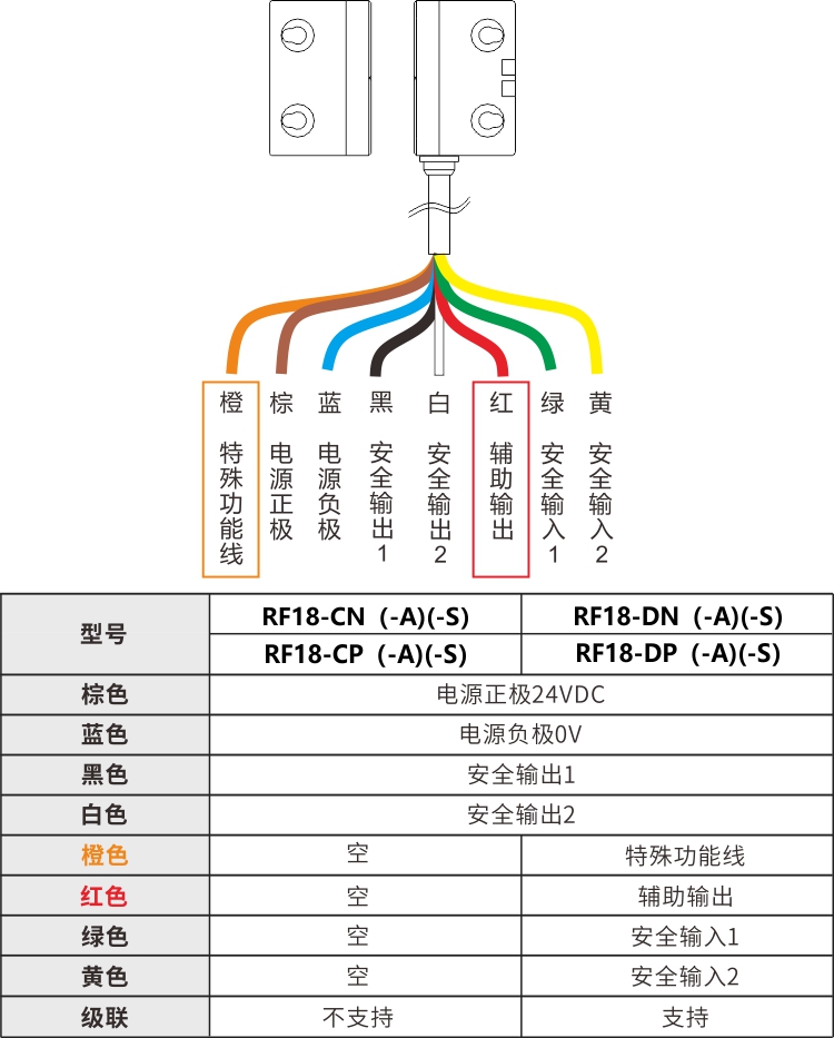特殊功能線設(shè)計,是用于唯一編碼的感應(yīng)器和執(zhí)行器重新配對。我們在使用安全門開關(guān)的時候,選擇唯一編碼可以最大程度的限制感應(yīng)器的觸發(fā)條件,以提高安全性,但是現(xiàn)場可能由于各種原因,無法找到與感應(yīng)器配對的唯一執(zhí)行器,或現(xiàn)場裝亂了。