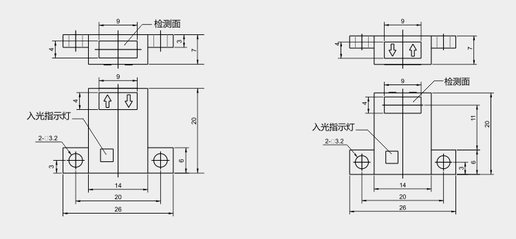 ECOTTER GN-07系列光電開關(guān) 提供了標(biāo)準(zhǔn)距離款與雙倍距離型號、上方檢測與前方檢測兩個(gè)檢測方向,可以根據(jù)不同的工況選擇對應(yīng)的款式。